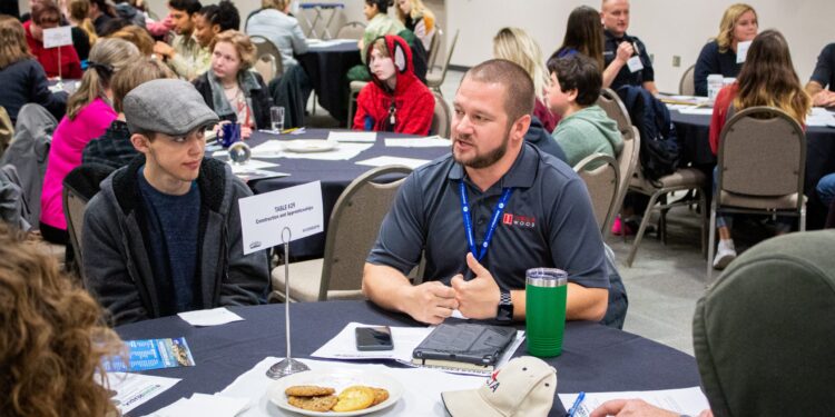 Late Tuesday morning (Nov. 12th) at the Lane Community College Center for Meeting and Learning over 150 select 9th and 10th grade high school students from A3, Springfield High, and Thurston High School met with representatives from local businesses during the Career Exploration, to discuss Career Technical Education (CTE). This event was part of the Springfield Chamber of Commerce’s ongoing #WorkReady initiative, designed to strengthen our local workforce and connect students with future careers right here in Springfield. Students were given the opportunity to ask questions and discuss various career paths with local professionals working in their field of interest. Representatives from over 40 businesses representing a multitude of industries were present and answering questions. From science and technology to arts and communication; 9th and 10th graders got the chance to ask working professionals what kind of training they needed, what a day-in-the-life is like or what kind of opportunities they could find in Springfield. The event was a great success, with these business leaders imparting enthusiasm and understanding of their industry to our local students, in the hopes of further cultivating the local pool of highly qualified talent.