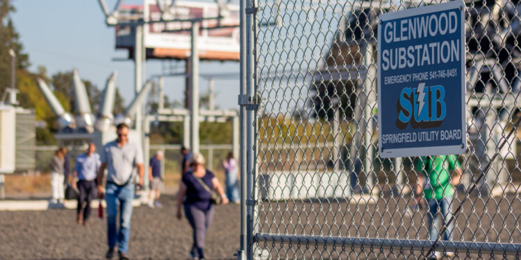 Standing among the breakers, switches, and 117,960 pound custom transformer, attendees heard from King that Springfield’s 9th substation will be energized and operating as soon as 2026. This follows a series of strategic moves dating back to 2000, when SUB acquired the nearby Alvey-Springfield 115kV transmission line from Bonneville Power Administration (BPA). In the next year, SUB will connect a newly built transmission line along I-5 to the existing 115kV line, effectively powering the substation. “Once operational,” states SUB’s website, “this substation will support the approximately 800 existing residential and business customers in Glenwood, add capacity for additional development of residential neighborhoods and businesses in the area, and provide extra resiliency to adjacent neighborhoods in Springfield, including West Centennial and Downtown.”