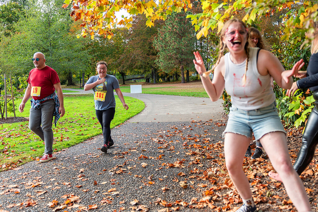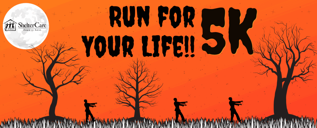 Prepare to Run for Your Life! ShelterCare will once again be partnering with Thrill the World Eugene to host their annual zombie-themed timed 5k benefit with over 100 zombies hidden around the Alton Baker Park race course. The event is sponsored by Trillium Community Health Plan. There will also be a photo booth, face painting, and a zombie flash mob.