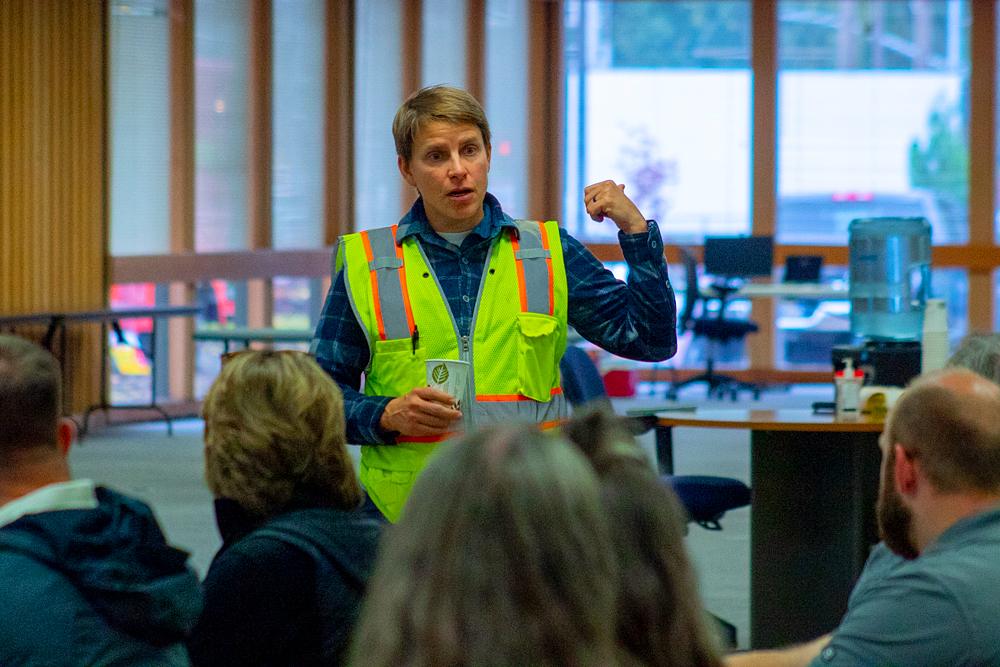 Matt Vaughn began his presentation with a brief history of IP. Founded in the late 1800s as a consortium of newsprint mills, International Paper (IP) has evolved into a global leader in sustainable, fiber-based packaging. The Springfield mill exemplifies that legacy, producing containerboard that becomes the corrugated boxes used by household names like Amazon and Costco. The Springfield plant is a union facility that employs nearly 300 workers, and this number doesn’t include contractors like trucking companies and recyclers, all of whom are vital to IP’s processes. The mill is also one of Lane County’s largest taxpayers.