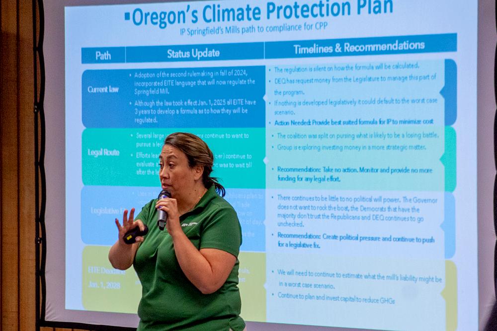 Attendees then heard from Cynthia Leon, IP’s Government Relations Manager, who discussed the ongoing uncertainty surrounding Oregon’s Climate Protection Plan (CPP) and its potential implications for energy-intensive industries.