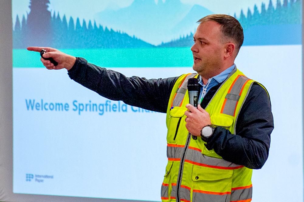 To begin the program, the Springfield Chamber’s Senior Director of Advocacy & Economic Development, Paige Walters, introduced International Paper Mill Manager Matt Vaughn.