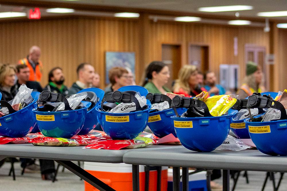 After presentations, attendees grabbed their PPE and followed Mr. Vaughn out to the active mill, which presses and dries wood pulp into paper 24 hours a day. The tour wound through a vast series of metal grate and concrete walkways, within mere feet of workers seeing the wood pulp though a rigorous process of pressure and dehydration. On the other side, workers manned a machine called a “winder” which then cut the 50-ton rolls into smaller units at the rate of 6,500 feet per minute. Mr. Vaughn and other employees pointed out some of the features of the plant and answered questions throughout the tour.