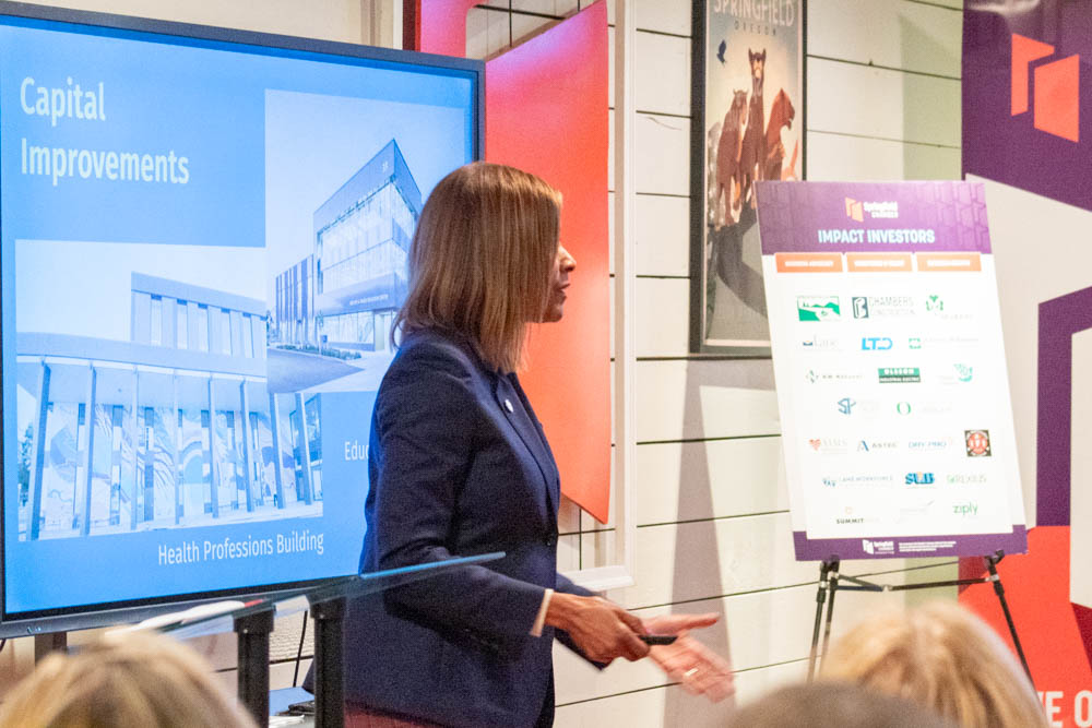 She highlighted initiatives like Mentor Connect, a joint Chamber of Commerce partnership connecting students with local employers, and encouraged businesses to engage with Handshake, Lane’s online platform that links employers with students and graduates.