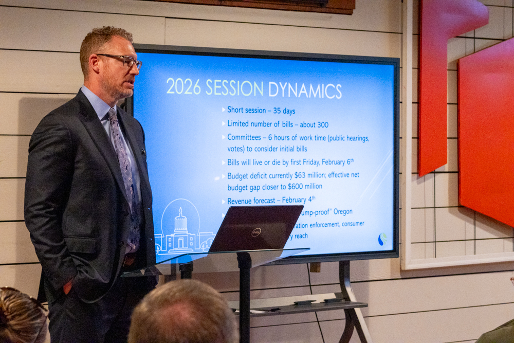 The Springfield Area Chamber of Commerce kicked off its its 2026 Roundtable series with a timely look at what’s coming next in Salem, and what it could mean for local businesses. With the Oregon Legislature’s short session (35 days) beginning February 2, the Chamber welcomed JL Wilson, Executive Director of the Oregon State Chamber of Commerce (OSCC), for an overview of the session’s dynamics, budget realities, and business policy issues most likely to take center stage.