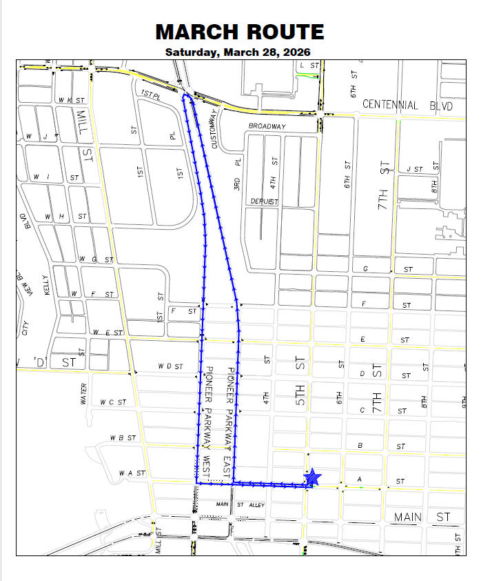 To support public safety and help the community plan ahead, the City has prepared a traffic and safety route map outlining the anticipated march path. Community members are encouraged to review the map and allow extra time for travel in the area.